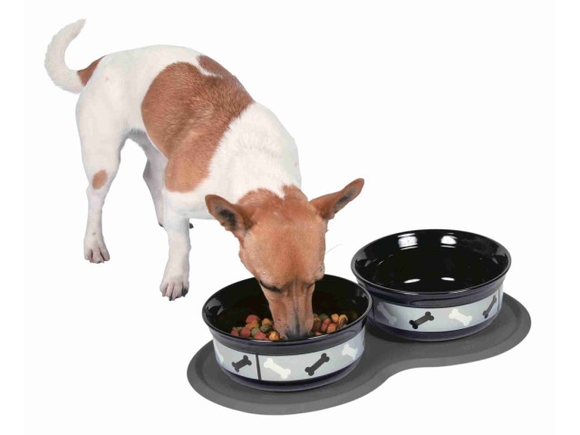 Trixie Set 2 Castroane Ceramice Cu Suport Metalic, 2×0.25 l/13 cm/27x7x14 cm, Alb/Negru, 24640