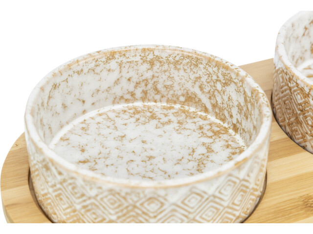 Trixie Set 2 Castroane Ceramice Cu Suport Din Bambus, 2×0.3 l/ø 12 cm/30x6x15 cm, Alb/Maro Deschis, 24828