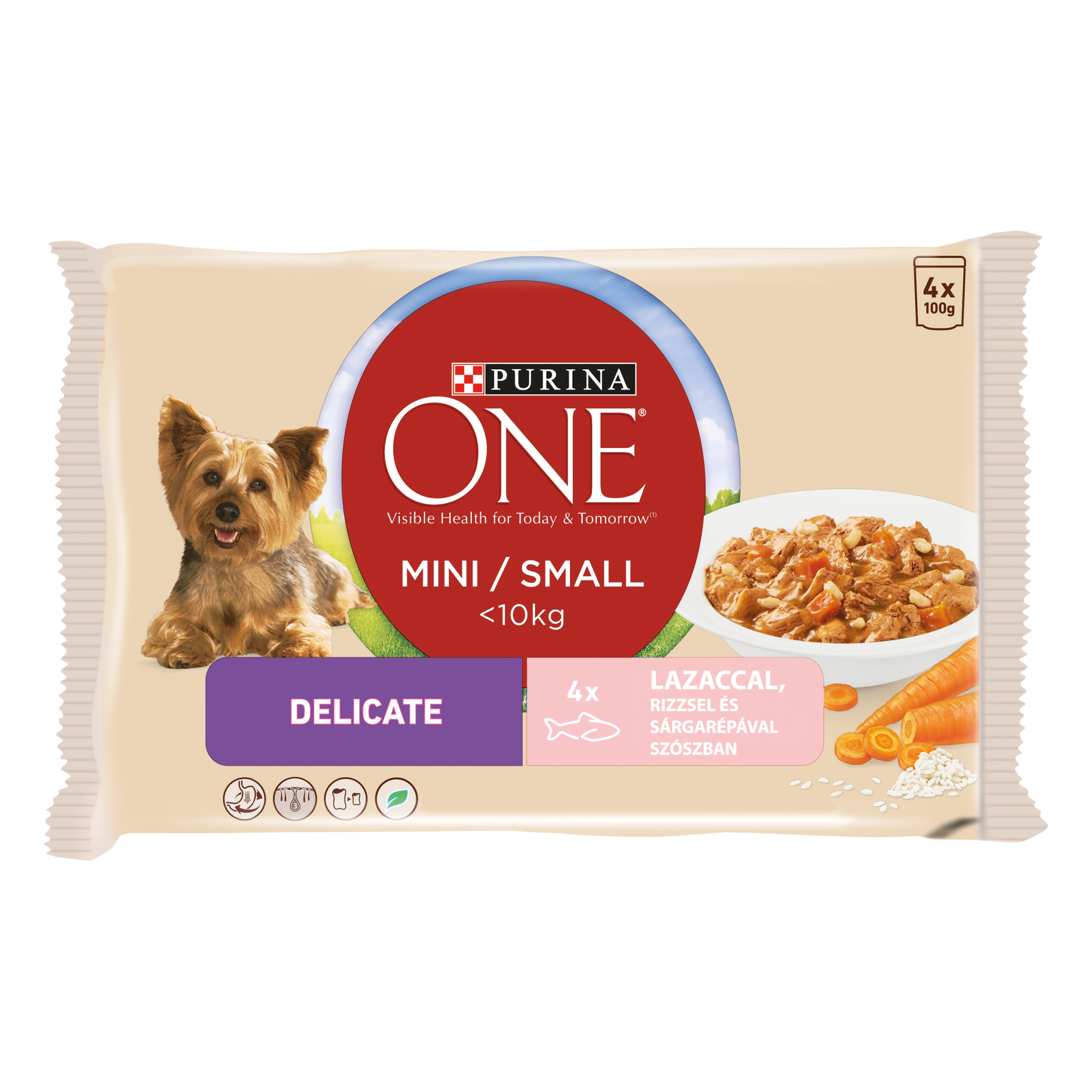 Purina Hrana Umeda Pentru Caini, One Mini Delicate, Cu Somon/Orez/ Morcovi, 4 x 100 g