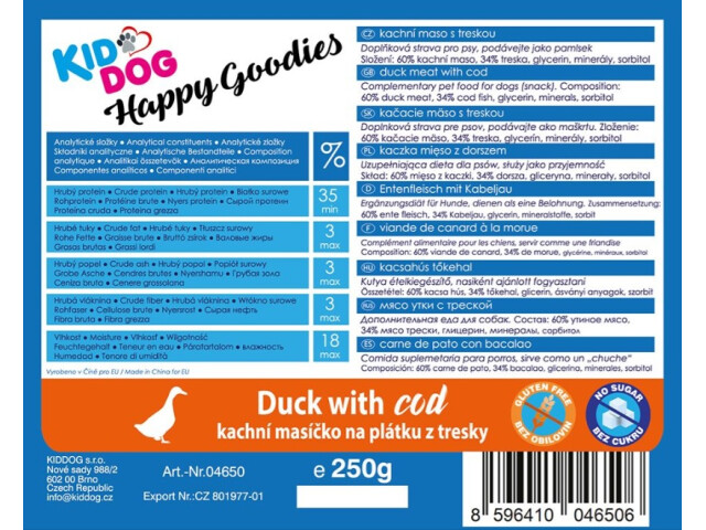 KidDog Recompense Pentru Caini, Felii De Cod Invelite Cu Rata, 250 g A04650