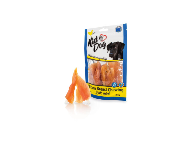 KidDog Recompense Pentru Caini, Mini Rulouri Invelite Cu Piept, 20 mm/8 cm, 250 g, A04549