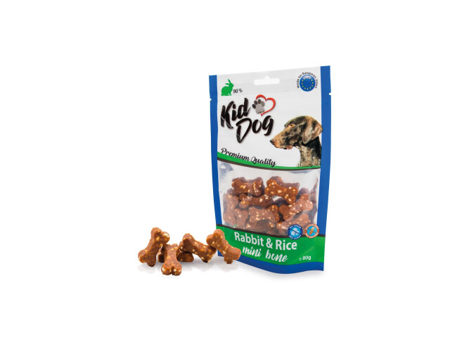 KidDog Recompense Pentru Caini, Mini Oase Cu Iepure Si Orez, 80 g, A04820