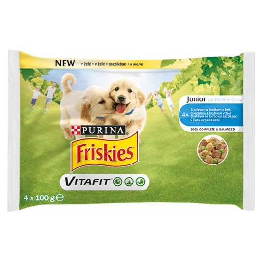 Purina Hrana Umeda Pentru Caini, Friskies Vitafit Junior, Pui Si Mazare In Jeleu, 4×100 g