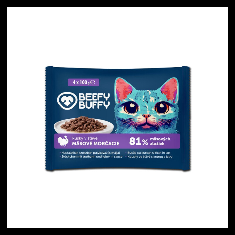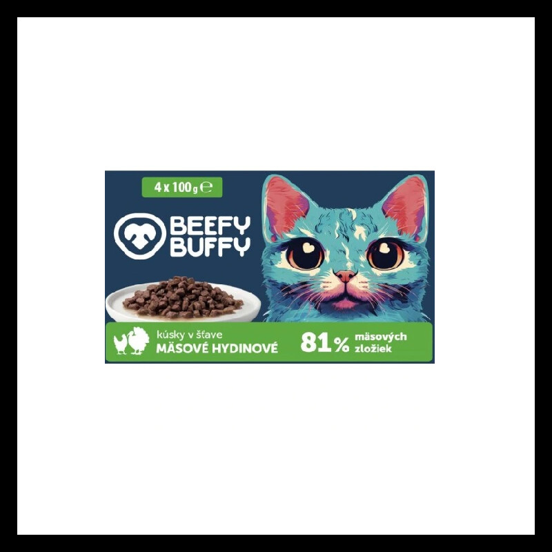 Beefy Buffy Hrana Umeda Pentru Pisici, Pui si Curcan in Sos, 4×100 g