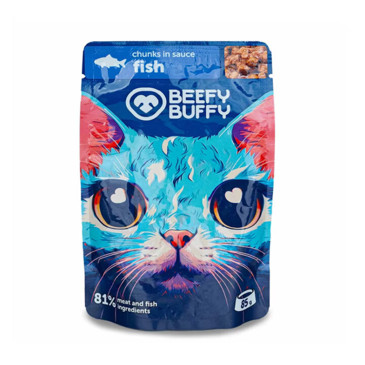 Beefy Buffy Hrana Umeda Pentru Pisici, cu Peste, 85 g