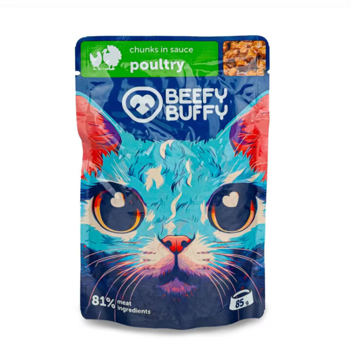 Beefy Buffy Hrana Umeda Pentru Pisici, cu Pasare, 85 g