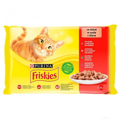 Friskies Hrana Umeda Pentru Pisici, Friskies, Cu Pui/Vita/Miel/Rata, 4×85 g