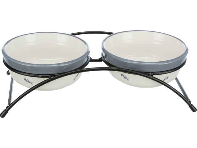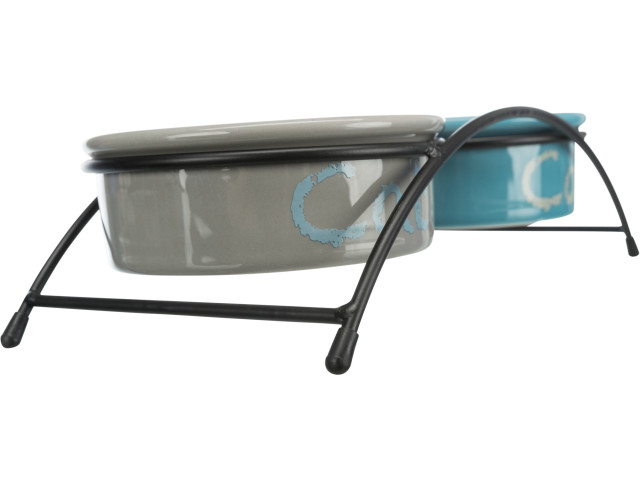Trixie Set 2 Castroane Ceramice Cu Suport Metalic, 2×0.3 l/12 cm/26x7x14 cm, Alb/Albastru-Gri, 24790