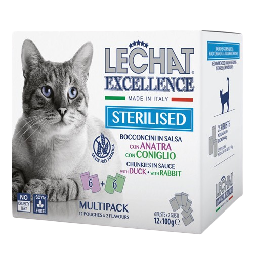 Monge Hrana Umeda Pentru Pisici, LeChat Excellence Steril, Multipack, Cu Rata/Iepure, 12×100 g