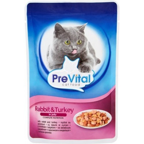 PreVital Hrana Umeda Pentru Pisici, Prevital, Cu Iepure Si Curcan In Jeleu, 100 g