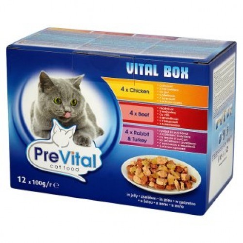 PreVital Hrana Umeda Pentru Pisici, Prevital Vital Box, Cu Pui/Vita/Iepure/Curcan, 12×100 g