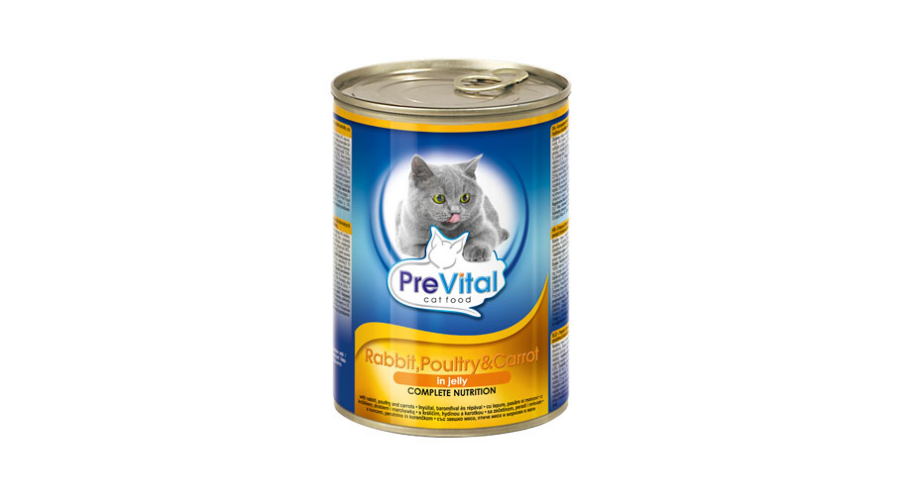 PreVital Hrana Umeda Pentru Pisici, Prevital, Cu Iepure/Pasare/Morcovi, In Jeleu, 415 g