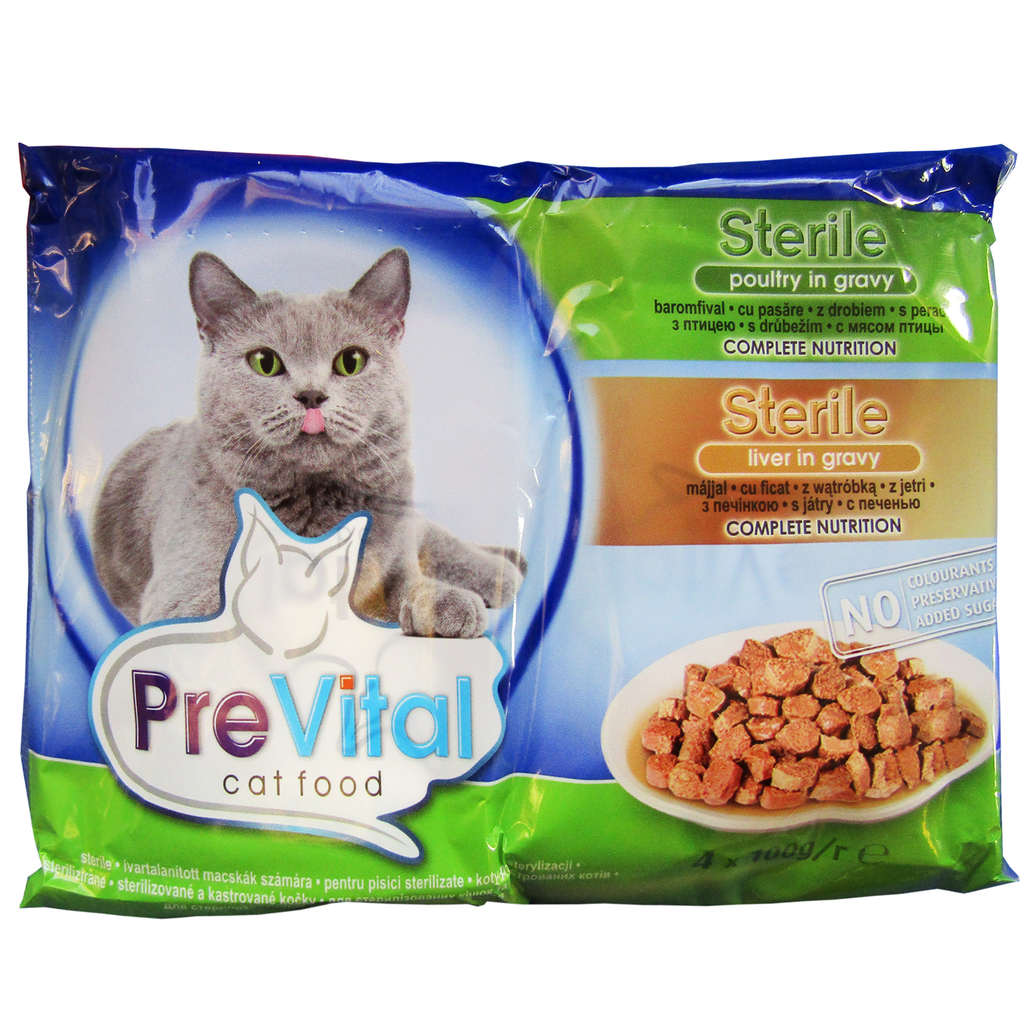 PreVital Hrana Umeda Pentru Pisici, Prevital Sterile, Pasare Si Ficat In Sos, 4×100 g
