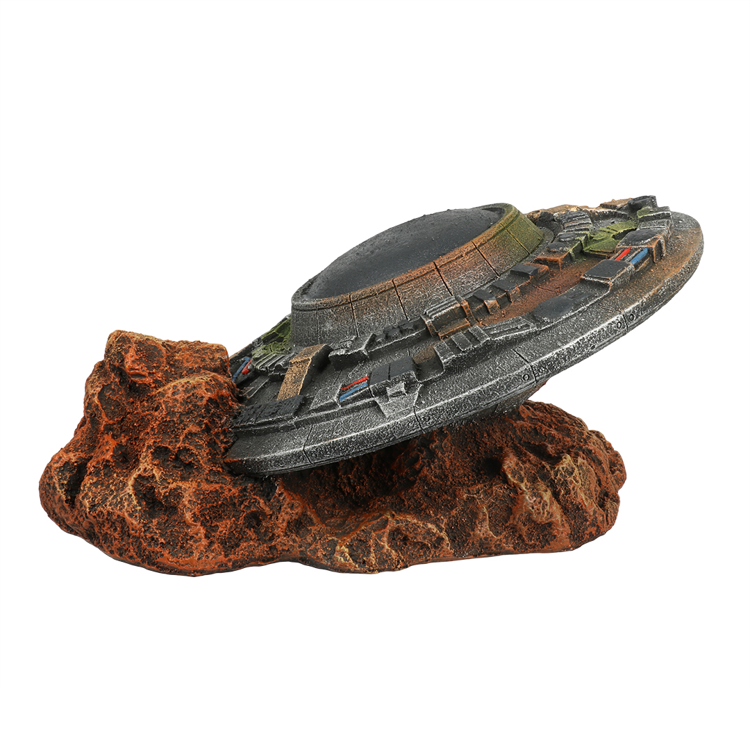 Acest OZN este un ornament fabricat din rasina poliesterica. Acest decor este complet non-toxic si nu afecteaza echilibrul biologic din acvariul tau. Decorul este potrivit atat pentru acvariile de apa dulce, cat si pentru acvariile marine.
