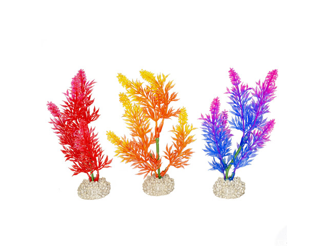 Planta artificiala colorata din material sintetic flexibil Baza puternica din rasina sintetica Se misca natural cu curentul Ofera ascunzatori si locuri de depunere a icrelor Potrivit pentru acvarii si terarii Diverse culori. Selectarea culorilor nu este posibila. Depinde de disponibilitatea stocului.