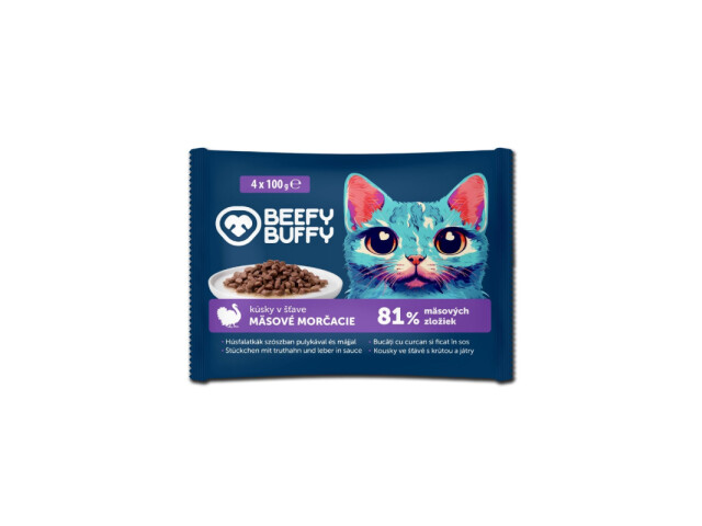 Reteta este conceputa pentru a satisface preferintele pisicilor care apreciaza gustul intens si textura suculenta. Cu 81% ingrediente de origine animala, aceasta hrana reprezinta o sursa excelenta de proteine esentiale pentru energia si vitalitatea pisicii adulte. Este potrivita pentru mesele zilnice, contribuind la o alimentatie complet a si echilibrata.