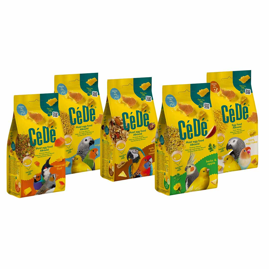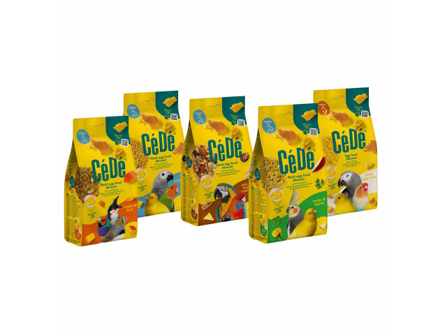 Imbunatateste atractivitatea magazinului tau si nutritia pasarilor cu Display-ul Cede Allround umplut! Acest display atragator de 54x29x44cm este pre-umplut cu o selectie rafinata de produse Cede Allround cu ou, concepute pentru pasarile ornamentale consumatoare de seminte, precum canari, perusi si cintezoi. Include o varietate de delicii pe baza de ou, inclusiv hrana cu ou umeda cu arome precum ierburi si mar, fructe tropicale si nuci si fructe, plus tortul de ou 100%, toate create cu formula unica de tort de ou Cede, oferind o modalitate convenabila si atractiva de a furniza pasarilor proteine, vitamine si minerale esentiale pentru o sanatate optima. Caracteristici principale: Selectie premium: 5414390002516 – CeDe Hrana Umeda cu Oua Pentru Pasari Exotice, 200 g, L148.00.04 – 5 buc 5414390225427 – CeDe Hrana Umeda cu Oua Pentru Pasari Exotice, cu Ierburi si Mar, 200 g, L152.00.07 – 5 buc 5414390225397 – CeDe Hrana Umeda cu Oua Pentru Pasari Exotice, cu 100% Tort de Ou, 120 g, L154.00.07 – 5 buc 5414390225410 – CeDe Hrana Umeda cu Oua Pentru Pasari Exotice, cu Fructe Tropicale, 200 g, L151.00.07 – 5 buc 5414390225403 – CeDe Hrana Umeda cu Oua Pentru Nimfe, cu Nuci si Fructe, 200 g, L153.00.07- 5 buc Nutritie de inalta calitate: Contine pana la 31.4% derivate din ou, oferind proteine animale usor digerabile, alaturi de cereale, produse de panificatie si minerale pentru a completa dietele bazate pe seminte. Display atragator: Design compact de 54x29x44cm prezinta produsele intr-un mod atractiv, ideal pentru magazinele de animale sau spatiile pasionatilor de pasari. Suport pentru toate sezoanele: Produsele sunt potrivite pentru perioadele de repaus, reproducere si naparlire, asigurand vitalitatea pasarilor pe tot parcursul anului. Beneficii: Creste succesul reproducerii cu hrane bogate in proteine, pline de aminoacizi esentiali. Sustine un penaj vibrant si o naparlire usoara cu formule dense in nutrienti. Atractiv pentru clienti datorita prezentarii vizuale, sporind vanzarile de produse de nutritie pentru pasari de inalta calitate. Previne deficientele nutritionale, mentinand pasarile sanatoase si active in etapele solicitante ale vietii. Mod de utilizare: Pozitioneaza display-ul intr-o locatie proeminenta din magazin pentru a atrage atentia. Pentru hranirea pasarilor, urmeaza instructiunile fiecarui produs: Perioada de repaus: Ofera hrana cu ou de 2-3 ori pe saptamana, pana la 25% din ratia zilnica. Perioada de reproducere: Administreaza zilnic, ideal de 2-3 ori; redu la 25% dupa intarcare. Perioada de naparlire: Furnizeaza pana la 25% din ratia zilnica. Umezeste produsele dupa nevoie cu cateva picaturi de apa sau seminte germinate. Serveste intr-un vas curat alaturi de hrana principala. Depoziteaza display-ul si produsele intr-un loc intunecat, uscat si racoros pentru a mentine prospetimea. Transforma magazinul tau si dietele pasarilor cu Display-ul Cede Allround umplut – o combinatie perfecta de nutritie premium si prezentare captivanta pentru pasari sanatoase si fericite
