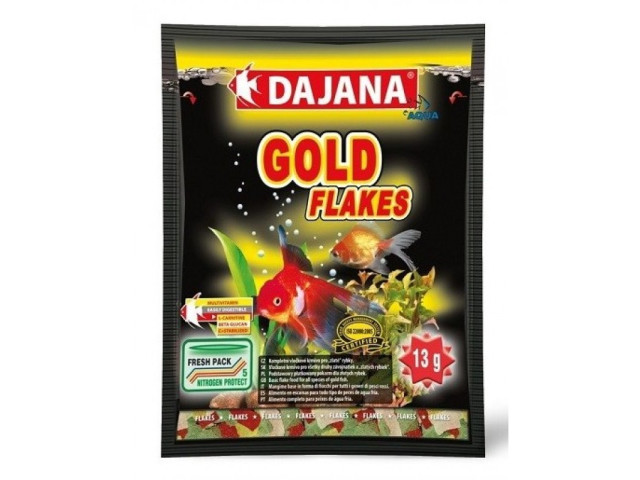 DAJANA GOLD Plic Pentru Pesti De Culoare Auriu Si Rosu 10g GOLD Hrana fulgi pentru toate tipurile de pestisori aurii si decorativi de culoare rosie. O reteta speciala continand o proportie optima de minerale si vitamine care contribuie la colorarea naturala, la dezvoltarea armonioasa si la sistemul imunitar al pestilor dvs. afecteaza in mod pozitiv echilibrul biologic al organismului si al intregului acvariu. Vitamins 35 % proteins 5 % fat 8 % humidity 2 % fibres 7 % ash 22000 U.I. / kg vitamin A 1200 U.I. / kg vitamin D3 100 mg / kg vitamin E 300 mg / kg vitamin C
