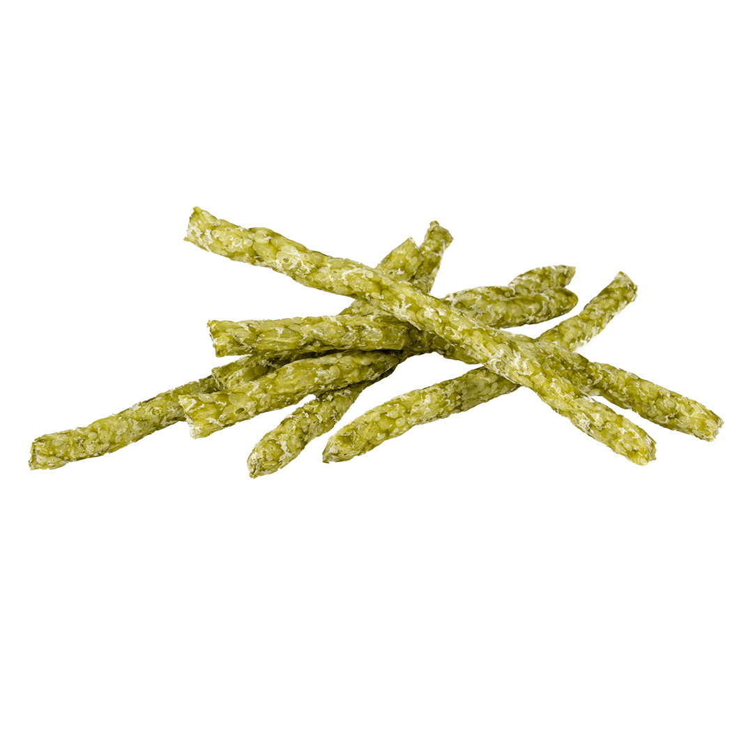 Betisoare crocante de mestecat cu spanac verde Tratament pentru animale mici Previne plictiseala Ideal ca gustare sau recompensa Mod natural de a ascuti dintii Betisoare gustoase cu spanac Ora de gustare! Aceste betisoare gustoase duvoplus vor face cu siguranta fericite mamiferele tale mici. Aceste betisoare cu spanac sunt perfecte ca rasfat suplimentar pentru mamiferele mici. Ele ajuta la uzura dintilor in mod natural si previn plictiseala. Dar nu exagera! 🙂 Gustarile ar trebui sa fie oferite doar ca supliment si pentru a adauga varietate meniului zilnic al micului tau mamifer.