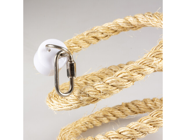 Coarda spirala din sisal cu clopotel, bej Franghie din sisal natural Cu clopotel Include carlig pentru agatat Ore de distractie prin joaca si catarare Potrivit pentru toate tipurile de pasari Jucarie naturala din sisal pentru pasari Aceasta spirala de franghie din sisal naturala cu un clopotel este o jucarie duvoplus grozava pentru catarat sau rontait. Iti va mentine pasarile active si este usor de atasat la orice voliera folosind carligul..