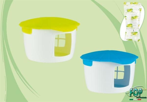 Aceasta casuta este realizata din plastic si a fost conceputa pentru a oferi un spatiu sigur si confortabil pentru rozatoarele de companie, cum ar fi soarecii, hamsterii sau cobaii. Casutele pentru rozatoare pot fi de diferite forme si dimensiuni, adaptate nevoilor specifice ale fiecarui animal, oferindu-le un loc de odihna, protectie si intimitate. Ele pot fi prevazute cu intrari sau ferestre pentru a permite animalului sa intre si sa iasa in siguranta. In plus, casutele pentru rozatoare pot fi personalizate cu decoratiuni sau accesorii suplimentare pentru a le face mai atragatoare si mai distractive pentru animalele de companie. Acestea pot fi amplasate in interiorul custilor sau in alte spatii special amenajate pentru a oferi animalelor un mediu de viata cat mai confortabil si sigur. Diverse culori (albastru sau galben). Selectarea culorilor nu este posibila.