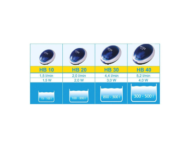 Pompa de aer HB, pentru acvariu Caracterizat de un sistem avansat de comprimare a aerului. Functionare foarte silentioasa, consum redus de energie. 7x15x8 cm