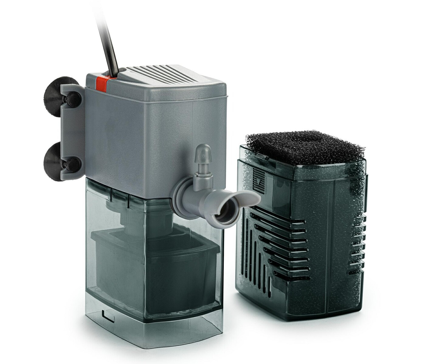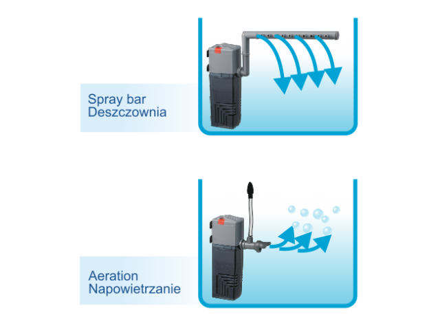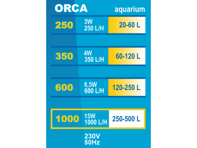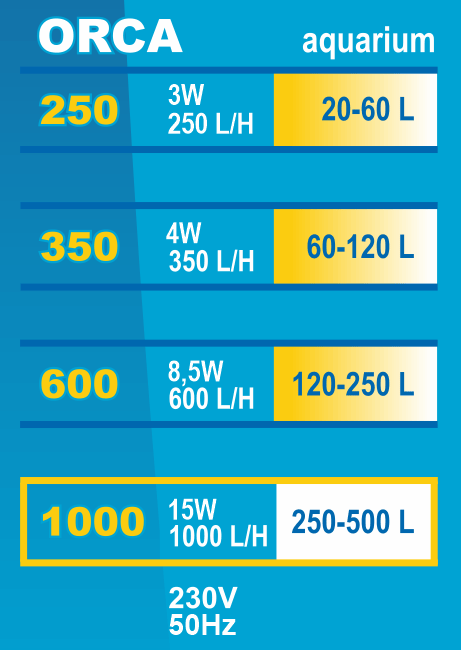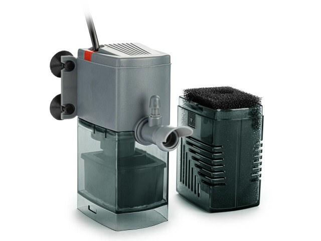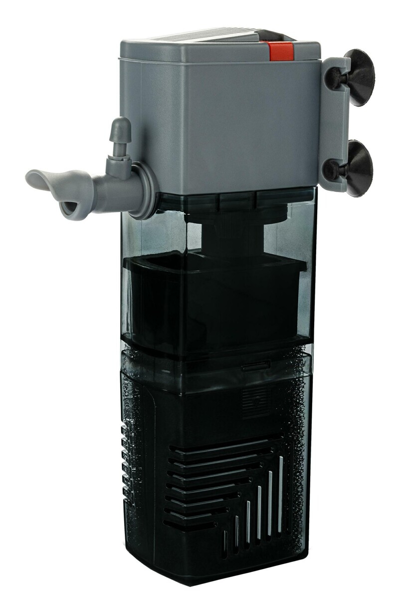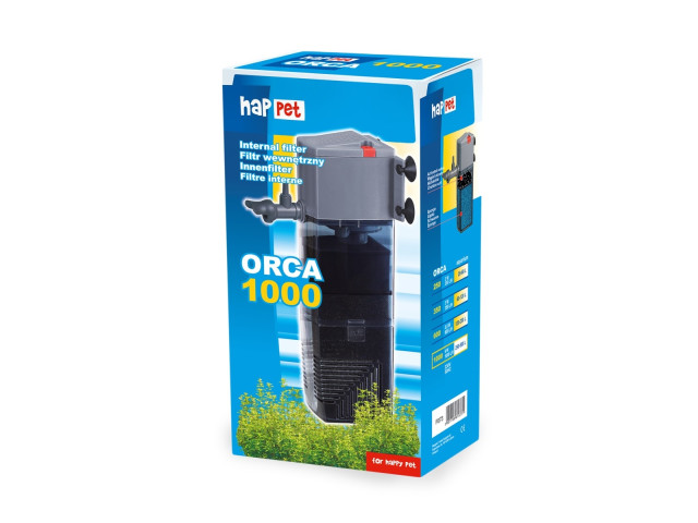 FILTRU INTERN ORCA 1000 – 1000l/h pentru acvariu de 250-500 litri Ofera filtrare mecanica, biologica si chimica la un nivel ridicat, ajutand la mentinerea apei curate in acvariu. Are un cartus filtrant cu burete, care este usor de curatat – un burete cu filtru este suficient pentru a clati in apa de acvariu sau in apa calduta de la robinet pentru a pastra flora bacteriana. Marele avantaj al filtrului este ca este echipat cu un sprinkler care face ca acvariul sa arate mai atractiv, previne formarea unui strat de bacterii si a apei foarte oxigenate. Pe de alta parte, carbunele activ mentine apa curata si elimina mirosurile neplacute. In plus, filtrul are o serie de alte avantaje: -usor de folosit si usor de intretinut -rezistent la colmatarea cu impuritati mecanice -ocupa spatiul minim in acvariu -usor de asamblat si folosit – doar atasati-l pe peretele interior al acvariului folosind ventuze. -are capacitatea de a regla directia iesirii apei in intervalul de peste 180 de grade Date tehnice: Putere: 15 W. Debit: 1000 l/h. Inaltimea filtrului: 28 cm. Destinat acvariilor cu o capacitate de 250-500l.