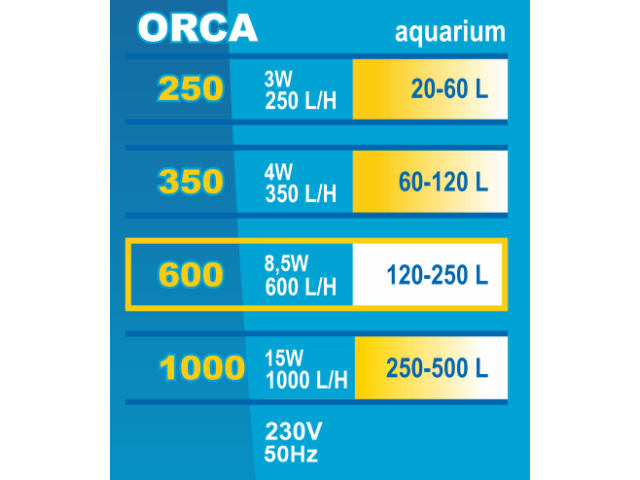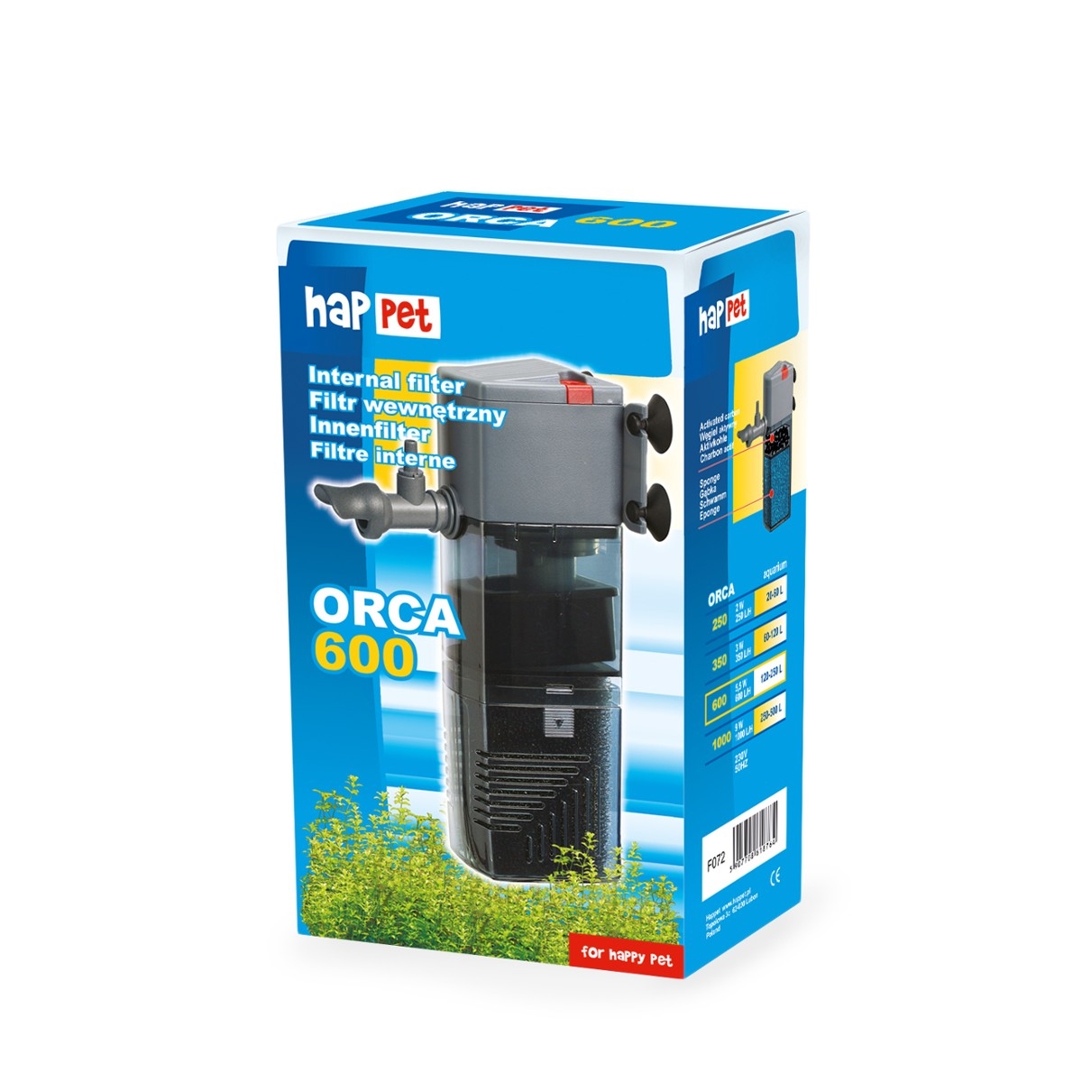 FILTRU INTERN ORCA 600 – 600l/h pentru acvariu 120-250 litri Ofera filtrare mecanica, biologica si chimica la un nivel ridicat, ajutand la mentinerea apei curate in acvariu. Are un cartus filtrant cu burete, care este usor de curatat – un burete cu filtru este suficient pentru a clati in apa de acvariu sau in apa calduta de la robinet pentru a pastra flora bacteriana. Marele avantaj al filtrului este ca este echipat cu un sprinkler care face ca acvariul sa arate mai atractiv si previne formarea unui strat bacterian si oxigenarea puternica a apei. Pe de alta parte, carbunele activ mentine apa curata si elimina mirosurile neplacute. In plus, filtrul are o serie de alte avantaje: -usor de folosit si usor de intretinut -rezistent la colmatarea cu impuritati mecanice -ocupa spatiul minim in acvariu -usor de asamblat si folosit – doar atasati-l pe peretele interior al acvariului folosind ventuze. -are capacitatea de a regla directia iesirii apei in intervalul de peste 180 de grade Date tehnice: Putere: 8,5 W Debit: 600 l/h Dimensiune filtru: 22x6x7 cm Potrivit pentru acvarii cu o capacitate de 120-250 l.
