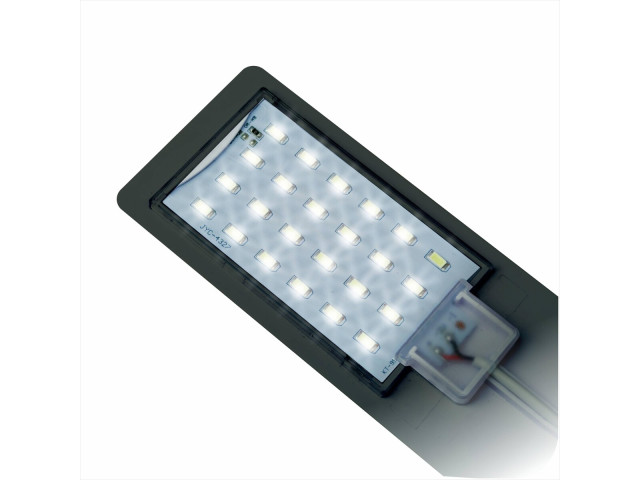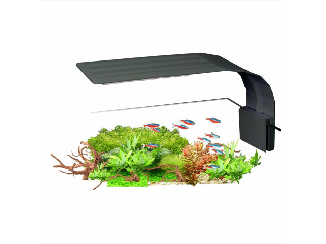 Lampa AquaLED Nano Black 7W Nanoacvariile devin din ce in ce mai populare. In acvariile miniaturale putem pastra nu numai pesti, ci si melci, midii, creveti, raci si chiar unii amfibieni (de exemplu, pestii clovn) si mini-crabi (genul Limnopilos). Cu toate acestea, inainte ca primii locuitori sa-si gaseasca drumul catre micro-acvariul nostru, trebuie sa avem grija de iluminarea sa corecta. Lampa AquaLED Nano Black 7W merita cu siguranta luata in considerare pentru fiecare nanoacvarist. AquaLED Nano White 7W se caracterizeaza printr-un design stilat care se potriveste perfect cu decorul camerei in care ne amplasam acvariul. Cu toate acestea, valorile estetice nu sunt singurul atu al AquaLED Nano WHite 7W. Emite lumina de o culoare asemanatoare cu cea naturala, permitand imitarea ciclului natural zi-noapte in acvariu. Garanteaza dezvoltarea corecta a plantelor si stimuleaza activitatea si hranirea animalelor. Lampa este potrivita pentru rezervoare de pana la 30 de litri, plantate cu majoritatea speciilor populare de plante de acvariu. Datorita suportului la indemana, lampa poate fi instalata in orice loc pe sticla acvariului. Permite crearea zonelor luminoase (pentru plantarea de plante iubitoare de lumina) si intunecate (ascunzatoare pentru animale timizi si alevini) in rezervor. Mod de utilizare: folosind suportul furnizat, montati-l pe sticla acvariului. Porniti lampa in fiecare zi timp de 10-12 ore. Putere: 7 W Flux luminos: 1200 lm Temperatura de culoare: 8000 K Clasa de impermeabilitate: IPX4 Tensiune: 220-240V Dimensiuni: 23×11 cm