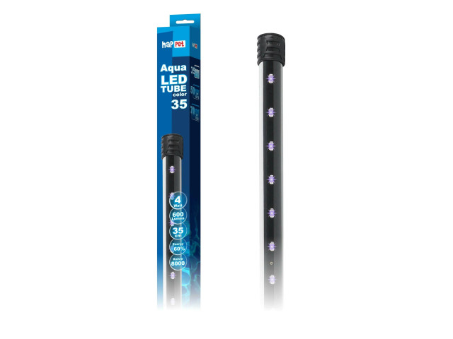 Iluminare profesionala pentru acvariile mici – pana la 40-50 cm lungime. Un spectru larg si o gama larga de culori a luminii emise indeplinesc nevoile celor mai populare plante de acvariu cu cerinte moderate de lumina (cum ar fi: gea fina, coniflora, alge de apa argentiniana, milfoil eurasiatic, lotus tigru, criptocoryne). Datorita carcasei sale etanse, AquaLED Tube Color poate rezista la umiditate ridicata, stropire si chiar scufundare sub apa. Avantajele dispozitivului includ consumul redus de energie, un raport pret/calitate rezonabil si suporturi la indemana care permit montarea lui pe orice husa, chiar si pe una de bricolaj. Lampa fluorescenta este potrivita nu numai pentru acvariile conventionale, ci si pentru paludaria si acvateraria locuite de crustacee (de exemplu, crabi din genul Geosesarma) si amfibieni mici (cum ar fi broastele din Orientul Indepartat si tritonii chinezi). De asemenea, poate fi folosit in terarii pentru cultivarea plantelor insectivore iubitoare de lumina (roza, capcana de muste, radacina cu gluga), care deseori lanceste in conditii de pervaz. Date tehnice: Lungime lampa: 35 cm Pentru lungimea acvariului: 40 – 50 cm Putere: 4 W Putere luminoasa: 600 lm LED (tip 5730): 12
