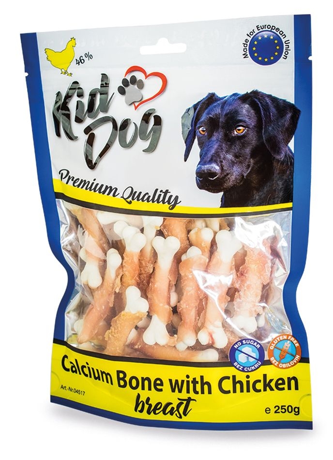 Gustare motivationala sau recompensa Cubul de calciu curata mecanic dintii si promoveaza mestecarea Aroma si gust atragator Compozitie: carne de pui 46 %, os de calciu 40 % glicerina, minerale Greutate: 250 g
