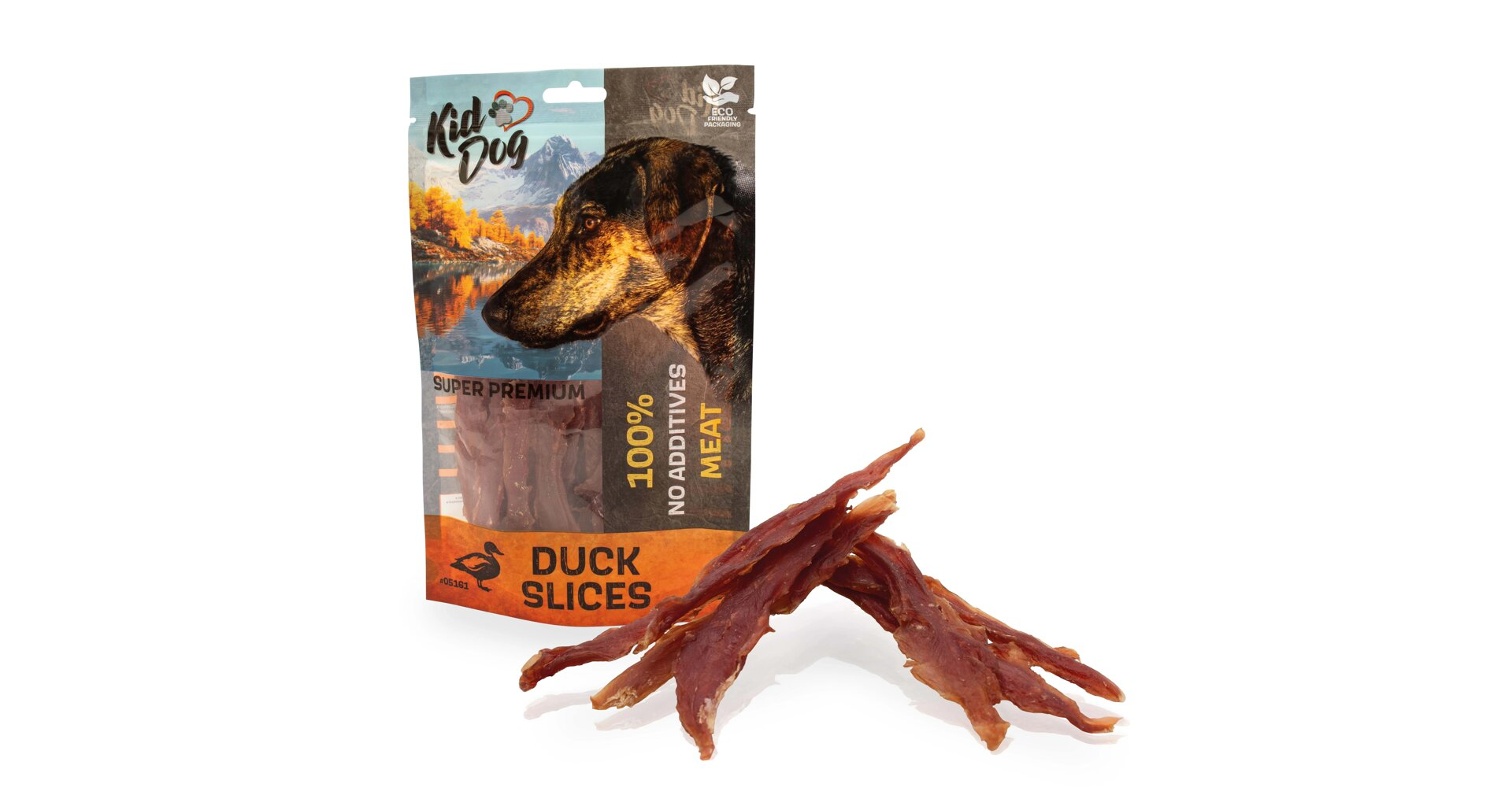 KIDDOG Super Premium 100% Piept de Rata Fara Aditivi, Benzi, 80g – Gustare Premium pentru CainiDescopera KIDDOG Super Premium 100% Piept de Rata Fara Aditivi, benzi, o gustare naturala si delicioasa, ideala pentru a rasfata cainele tau! Fabricata exclusiv din piept de rata de inalta calitate, fara aditivi sau conservanti, aceasta recompensa premium este perfecta pentru antrenamente sau momente de rasfat.Caracteristici principale: Ingrediente 100% naturale: 100% piept de rata, fara aditivi, conservanti sau coloranti artificiali. Compozitie analitica: Proteine min. 75%, grasimi max. 3%, cenusa bruta max. 4%, fibre 2%, umiditate max. 16%. Textura subtire: Benzi usor de portionat, potrivite pentru caini de toate talile, inclusiv pui sau seniori. Ambalaj practic: Punga resigilabila de 80g pastreaza prospetimea si aroma. Beneficii: Bogate in proteine: Cu minimum 65% proteine, sustin sanatatea musculara si vitalitatea. Usor digerabile: Ingredientele naturale sunt potrivite chiar si pentru cainii cu sensibilitati digestive. Perfecte pentru dresaj: Aroma intensa si textura subtire motiveaza cainii in timpul antrenamentelor. Potrivite tuturor: Ideale pentru pui, adulti, seniori si caini de toate talile.
