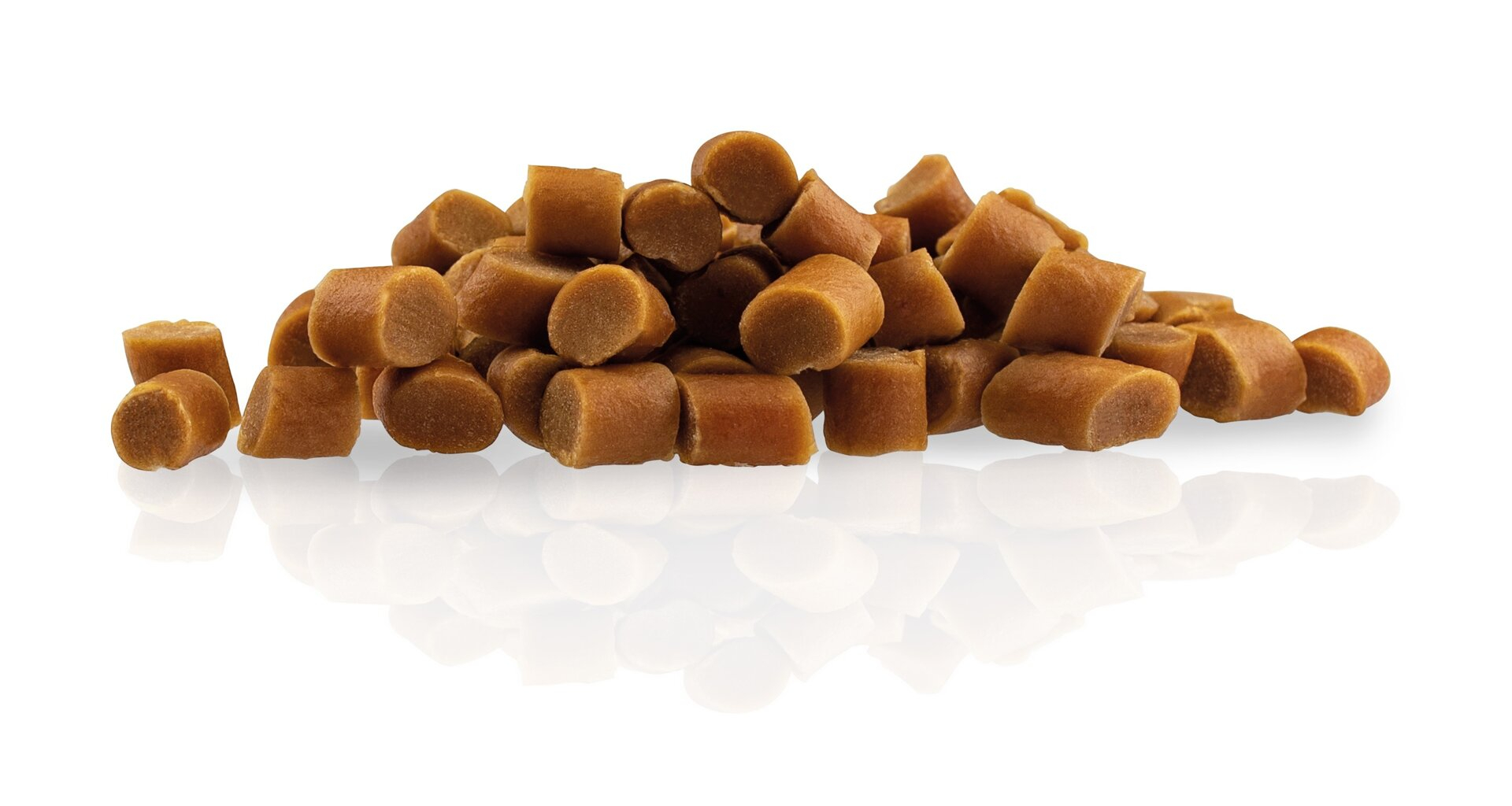 Recompensa potrivita pentru dresajul cainilor Hrana suplimentara pentru caini Calitate premium Fara cereale si zahar Compozitie: 92% carne de iepure, amidon, proteine vegetale, glicerina si sorbitol Compozitie analitica: proteina bruta 35%, grasime bruta 3%, cenusa bruta 3%, fibre brute 3%, umiditate maxima 18%