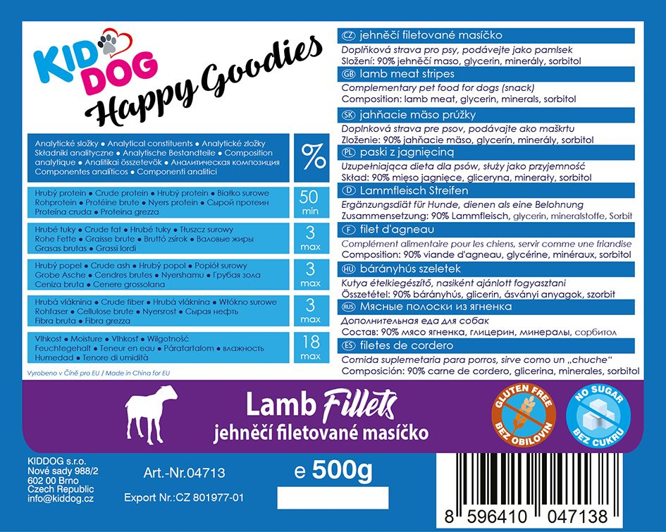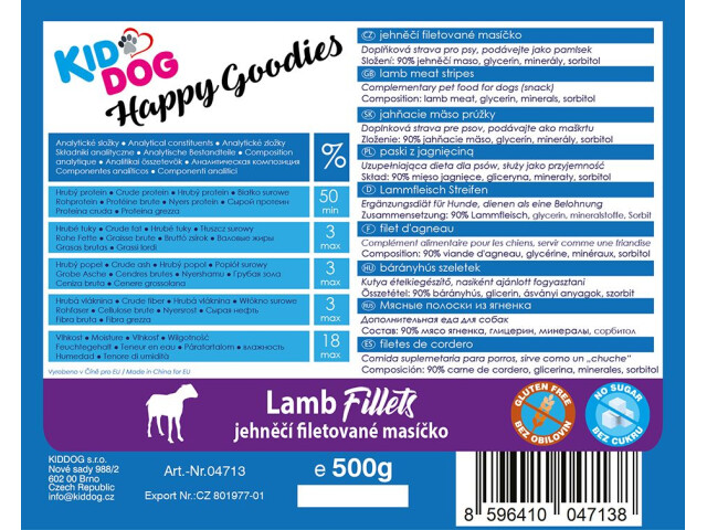 aroma si gust atragatoare recompensa motivationala poate fi taiata in bucati mai mici compozitie: miel 90 %, glicerina, minerale greutate: 500 g