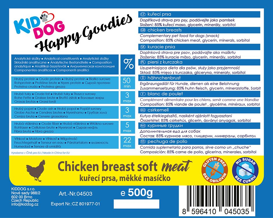 piept de pui, carne moale 500 g tratament sau recompensa motivationala, poate fi usor taiat in bucati mai mici aroma si gust atragatoare compozitie: carne de pui (85 %), glicerina, minerale greutate: 500 g