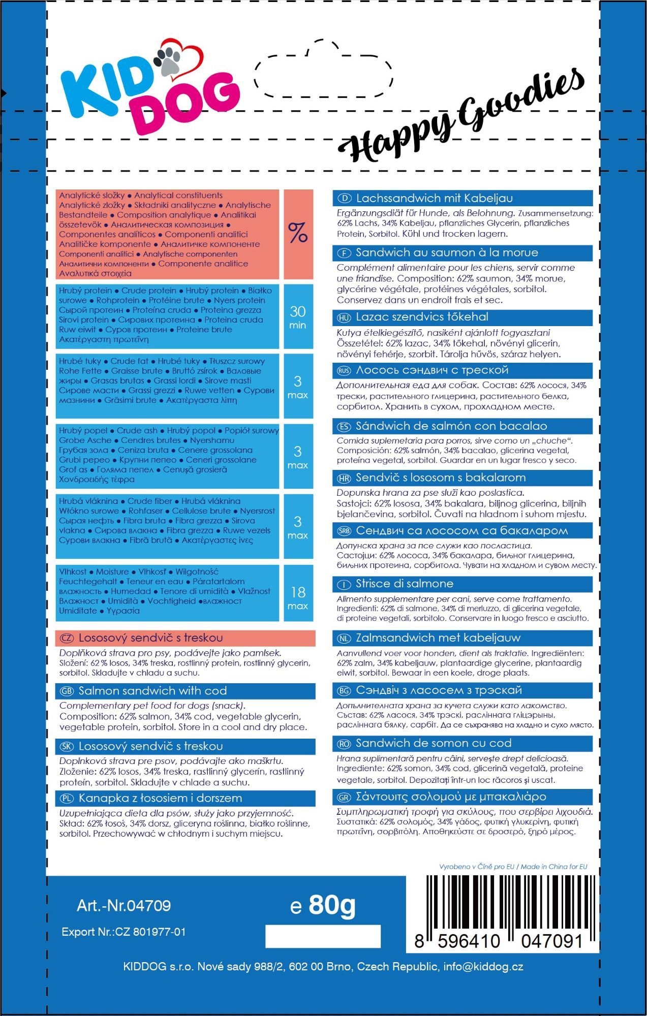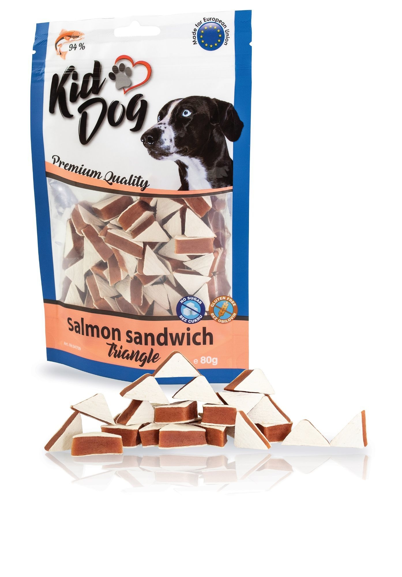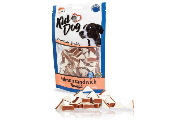 Triunghiuri sandwich cu somon 80 g hrana complementara pentru caini recompensa motivationala pentru animalul dvs. de companie calitate premium fara cereale si zahar continut de carne 94% greutate: 80 g