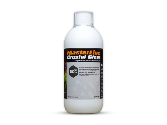 Descriere scurta • Limpezeste apa • Contribuie la marirea concentratiei de oxigen din acvariu • Contribuie la o perlare mai puternica • Compatibil cu toate formele de viata acvatica • Contine pahar dozator gradat de la 2.5 la 20 ml Beneficii • Uneste particulele fine de materie organica, ce dau tenta albicioasa a apei, acestea fiind ulterior filtrate mecanic • Limpezeste apa din acvariu si previne formarea algelor • Contribuie la marirea concentratiei de oxigen intensificand perlarea • Reduce concentratia de materie organica dizolvata in apa • Dupa fiecare folosire apa devine mai tulbure, urmand sa se limpezeasca la un grad ridicat in urmatoarele 6-12 ore • Compatibil cu toate formele de viata acvatica, inclusiv creveti, atata timp cat se respecta instructiunile Recomandari • Foloseste produsul doar in acvarii de apa dulce si dozeaza-l doar in timpul perioadei de iluminare • Dozeaza lent pe parcursul a 20-30 secunde departe de vietati sau plante, unde curentii apei sunt cei mai mari • Dozeaza doar daca KH-ul apei este de cel putin 2 grade si nu doza mai mult de doua ori pe saptamana • Acorda 24 ore pentru un grad maxim de limpezire • Pentru a preveni particulele in suspensie, curata filtrul si aspira substratul mai des • Nu contamina solutia cu apa din acvariu • Nu ingera si nu lasa la indemana copiilor si a animalelor de companie • Depoziteaza la temperatura camerei. Protejeaza de lumina, caldura si inghet • Numai pentru utilizare in acvarii Volum: 500 ml Continut MasterLine Crystal Clear contine solutii de limpezire a apei Dozaj 1 ml / 10 L atunci cand apa incepe sa devina tulbure (de obicei la 2-3 zile dupa schimbul de apa)