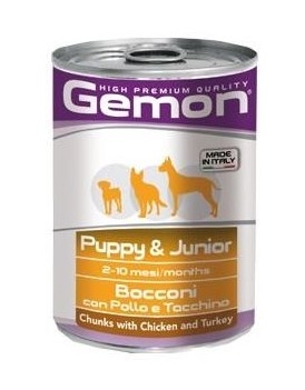 Hrana completa pentru catei de toate marimile, formulata pentru a oferi toti nutrientii necesari vitalitatii zilnice a prietenilor nostri patruped. GEMON HIGH PREMIUM QUALITY este o linie de alimente complete formulate cu ingrediente de calitate, selectate pentru a satisface nevoile nutritionale ale animalelor dumneavoastra. Alimente foarte gustoase, personalizate pentru diferitele varste si stiluri de viata ale animalului. Fara adaugare de coloranti artificiali si conservanti. Fabricat in Italia si fara test de cruzime. Continut: Carne si derivate 45% (pui proaspat 14%, curcan proaspat 12%), cereale, oua si produse pe baza de oua, substante minerale.