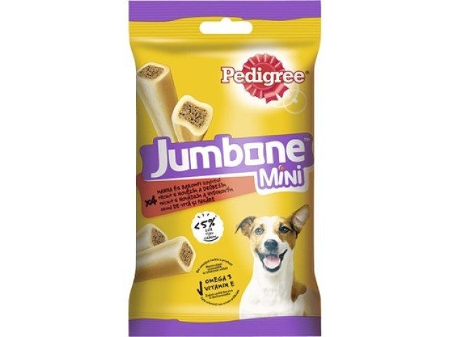 Recompensele Pedigree Jumbone Mini sunt deliciul perfect pentru cainii de talie mica! Aceste recompense delicioase au o textura unica, cu un miez delicios acoperit de o exterior crocant, care va face ca fiecare moment de rasfat sa fie o bucurie. Fie ca doresti sa recompensezi un comportament bun, sa incurajezi dresajul sau pur si simplu sa-i faci o surpriza prietenului tau patruped, Jumbone Mini este alegerea ideala. Contin ingrediente de calitate, formulate pentru a sustine sanatatea dentara, ajutandu-l pe cainele tau sa isi mentina dintii curati si sanatosi. Ambalajul de 160 g este convenabil si usor de utilizat, astfel ca poti purta rasfatul preferat al cainelui tau oriunde. Fiecare recompensa este gandita pentru a oferi nu doar un gust irezistibil, ci si un moment de bucurie in fiecare zi. Indeplineste dorintele canine cu Pedigree Jumbone Mini – o alegere delicioasa si sanatoasa pentru prietenul tau patrupezi!