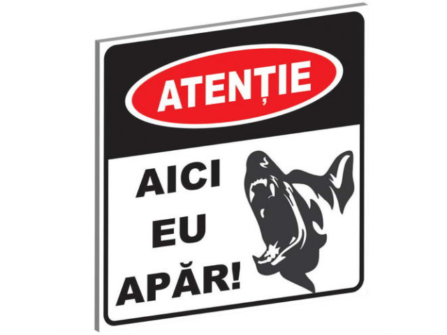 Placuta confectionata din PVC, avand inscriptionat avertismentul „Aici apar eu”.