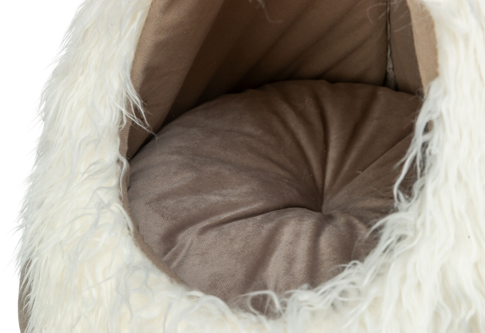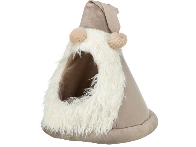 Trixie Cave Dwarf – adapostul festiv si confortabil pentru pisica ta Transforma-i spatiul de odihna intr-un loc de basm cu Trixie Cave Dwarf – un adapost in forma de pitic, ideal pentru sezonul de Craciun si nu numai. Cu un design jucaus si materiale de calitate, acest produs ofera pisicii tale un loc sigur si calduros pentru odihna si relaxare. Caracteristici cheie Design festiv: forma de pitic cu barba pufoasa si varf de palarie, aducand un strop de magie sarbatorilor. Materiale de calitate: exterior din material cu aspect de catifea si interior din plus moale, asigurand confort maxim. Perna reversibila: umpluta cu fleece din poliester, oferind caldura si suport suplimentar. Fund antiderapant: previne alunecarea pe suprafete netede, mentinand adapostul stabil pe loc. Dimensiuni: Ø 45 × 47 cm – potrivit pentru majoritatea pisicilor de talie medie.