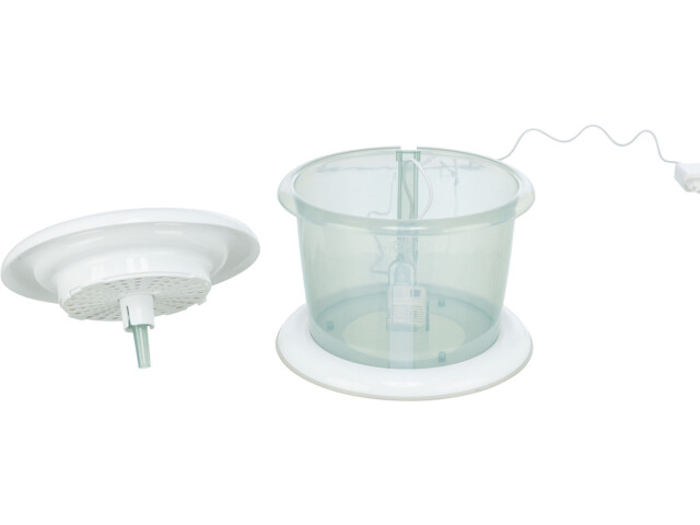 Aceasta fantana este perfecta pentru animalutul dumneavoastra. Bolul mai inalt permite animalului sa bea intr-o pozitie confortabila – potrivit mai ales pentru caini care sufera de artrita sau probleme ale muschilor. Apa circula constant in adapatoare si absoarbe incontinuu oxigen care ii ofera un gust proaspat. Pentru a pastra apa curata, exista un filtru cu carbon activ(care trebuie schimbat in fiecare 3 luni) Pompa este foarte silentioasa si are nevoie doar de 2 Watti, pentru folosirea economica a energiei. Detalii si avantaje ale produsului: Pivot la 360° pentru utilizare in orice pozitie Suprafata mare pentru o buna absorbtie a oxigenului – asigura un gust proaspat apei Filtru – curata impuritatile si sedimentele Capacitate: 3 l Putere: 230 Volt Va rugam sa luati in considerare urmatoarele observatii: In functie de duritatea apei, adapatoarea Adapator automat Trixie Bubble Stream trebuie curatata bine la 2-3 zile.