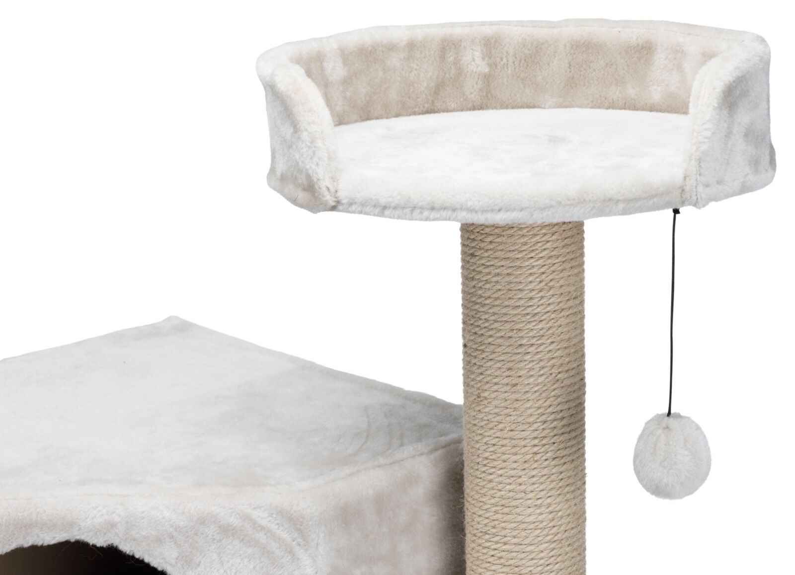 Rasfata-ti pisica cu Ansamblul de joaca Marlena de la Trixie, un spatiu multifunctional creat pentru joaca, relaxare si ingrijirea ghearelor. Cu un design elegant si functional, acest ansamblu este perfect pentru pisicile care iubesc sa exploreze, sa se catere si sa se odihneasca intr-un culcus confortabil. Marlena combina materiale de calitate cu un aspect modern, integrandu-se perfect in orice locuinta. Caracteristici si Beneficii: Stalpi inveliti in sisal natural: Asigura o suprafata ideala pentru ascutirea ghearelor, protejand mobila casei tale de zgarieturi. Zone de relaxare confortabile: Include platforme captusite si un culcus cozy pentru odihna si somn. Stimuleaza activitatea fizica: Nivelurile variate si spatiile de explorare incurajeaza pisica sa ramana activa si curioasa. Design modern si stabil: Constructie solida si robusta, oferind siguranta si confort chiar si pentru pisicile mai energice. Potrivit pentru toate rasele de pisici: Spatiile generoase si multiplele optiuni il fac ideal pentru pisici de toate dimensiunile.