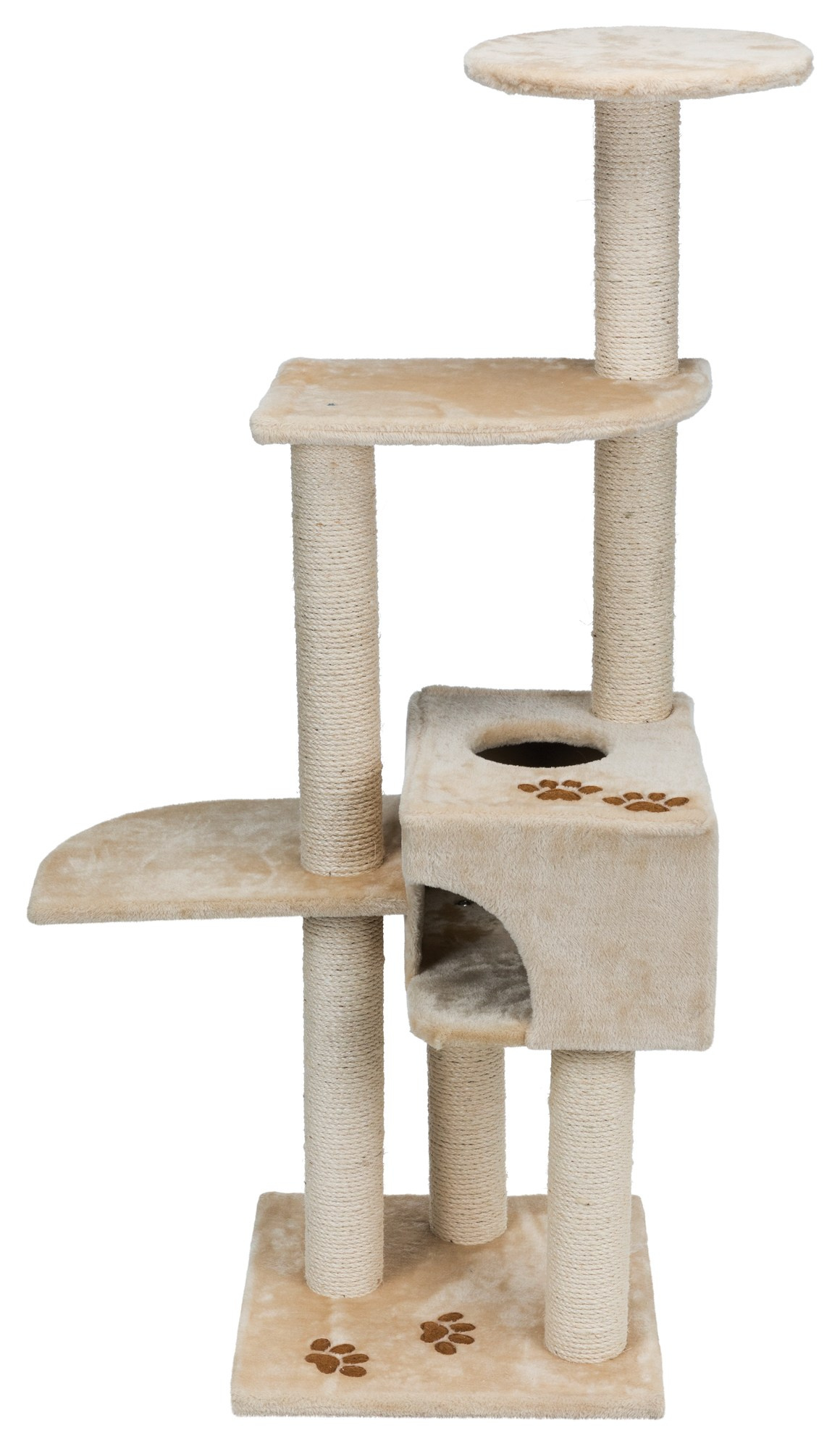 Ansamblu de joaca cu sisaluri si casuta Elemente invelite in plus Multiple nivele de joaca Culoare: Bej Dimensiuni: Baza: 45 x 45 cm, Inaltime 142 cm, Stalp: diametru 9 cm