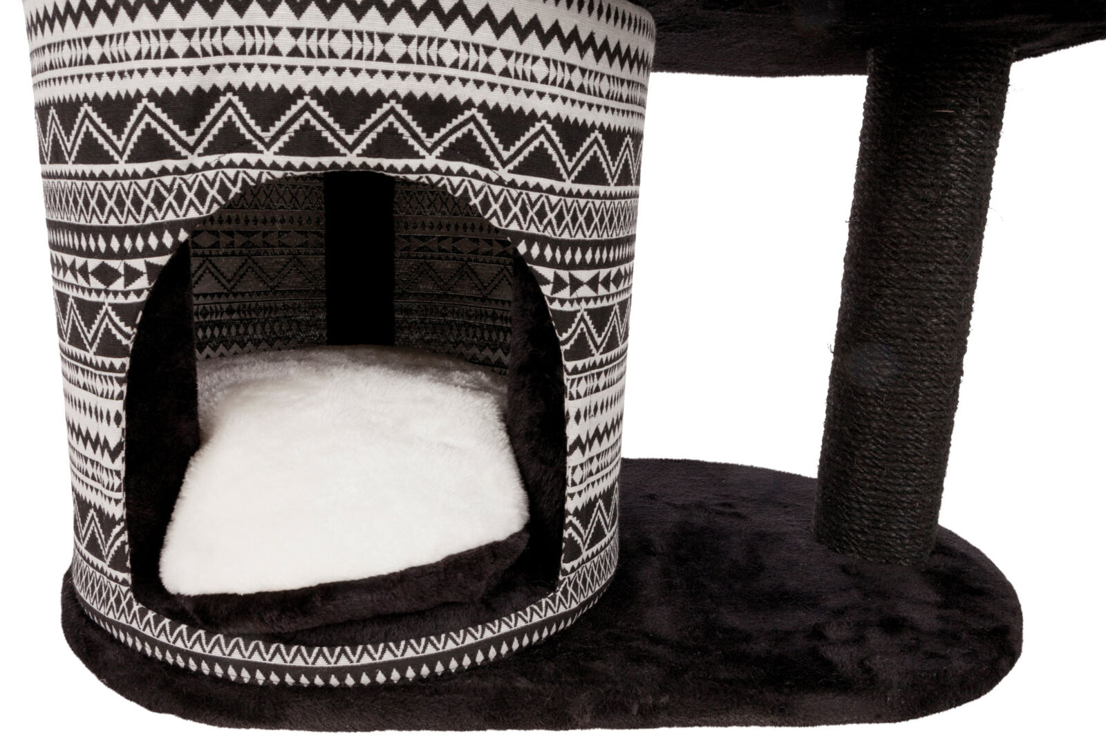 Sisal: ø 6 mm/plus (poliester): 280 g/m² cu pernă reversibilă: spălare manuală Hamac Culoare: negru/alb Nr. articol: 43466, suprafata de baza: 65 × 38 cm, inaltime: 112 cm