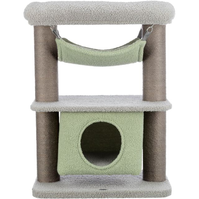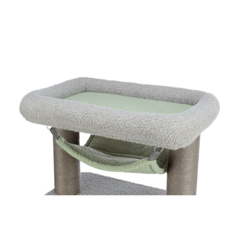 Sisal: ø 6 mm/plus (poliester): 270 g/m2 Pestera din plus cu baza captusita Pat dragalas cu platforma si margine captusita Hamac detasabil: spalare manuala Culoare: gri/menta