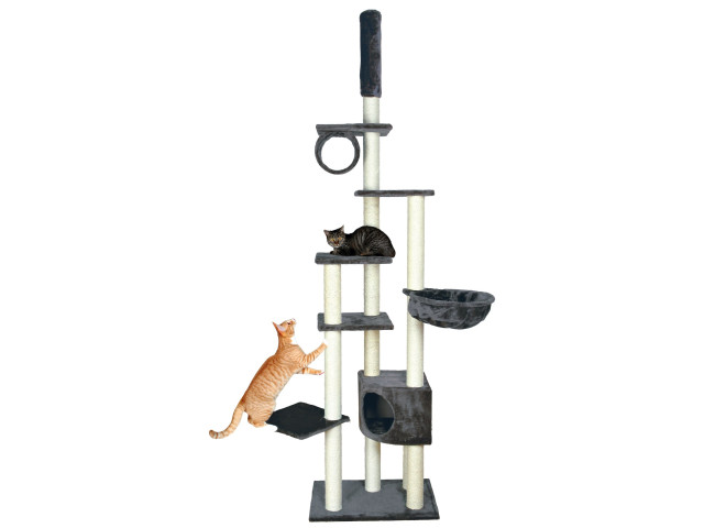 Ansamblul Trixie Madrid invelit in plus dispune de multiple nivele de joaca si sistem de prindere de tavan. Dimensiuni: – Baza: 68 x 44 cm – Inaltime: 245 – 270 cm – Diametru: 9 cm
