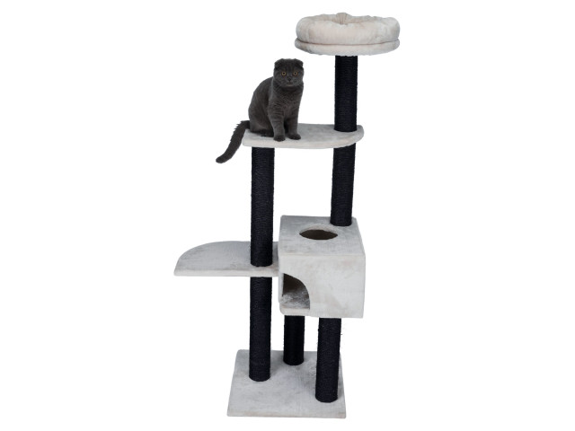 Informatii despre produs iuta: 6 mm/plus (poliester): 280 g/m² pestera echipata cu plus/fleece (poliester) platforma cu pat detasabil: se spala manual culoare: gri deschis Suprafata podea: 45 × 45 cm, Inaltime: 147 cm