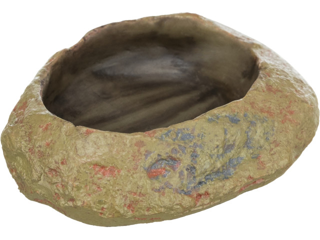Bol pentru hrana si apa potrivit pentru reptile. Fabricat din rasina de poliester, material care nu este toxic pentru hrana reptilelor. Interiorul este neted, astfel ca este usor de curatat. Articol nr. 76180 este deosebit de bun ca bol de apa pentru scorpioni si paianjeni si pentru umplere cu Aqua-Gel. Decor: Stanca de stepa.