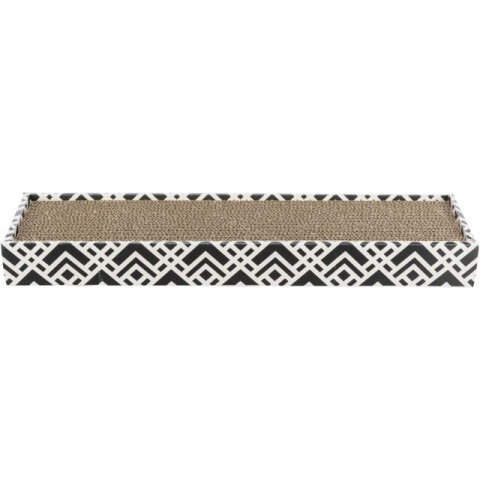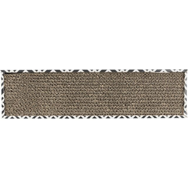 Carton pentru zgariat. Potrivit pentru ca pisicile sa isi manifeste instictele de a zgaria si de a-si ascute ghearele.Masuratori: 48x5x13 cm Culoare: negru/alb Cu catnip.